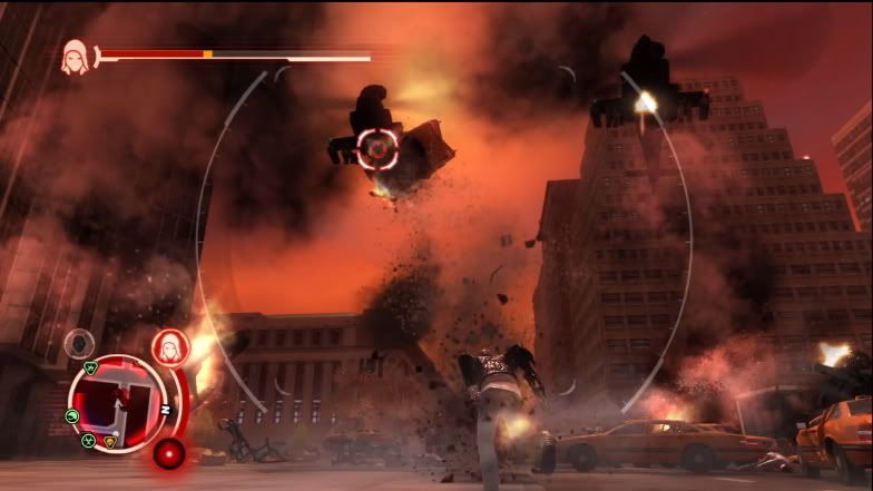 But I did like the grab button as once you have the whip ability; you can pull yourself up to a chopper no problem taking you right out of the chaos. Unless you get rocketed out the sky!